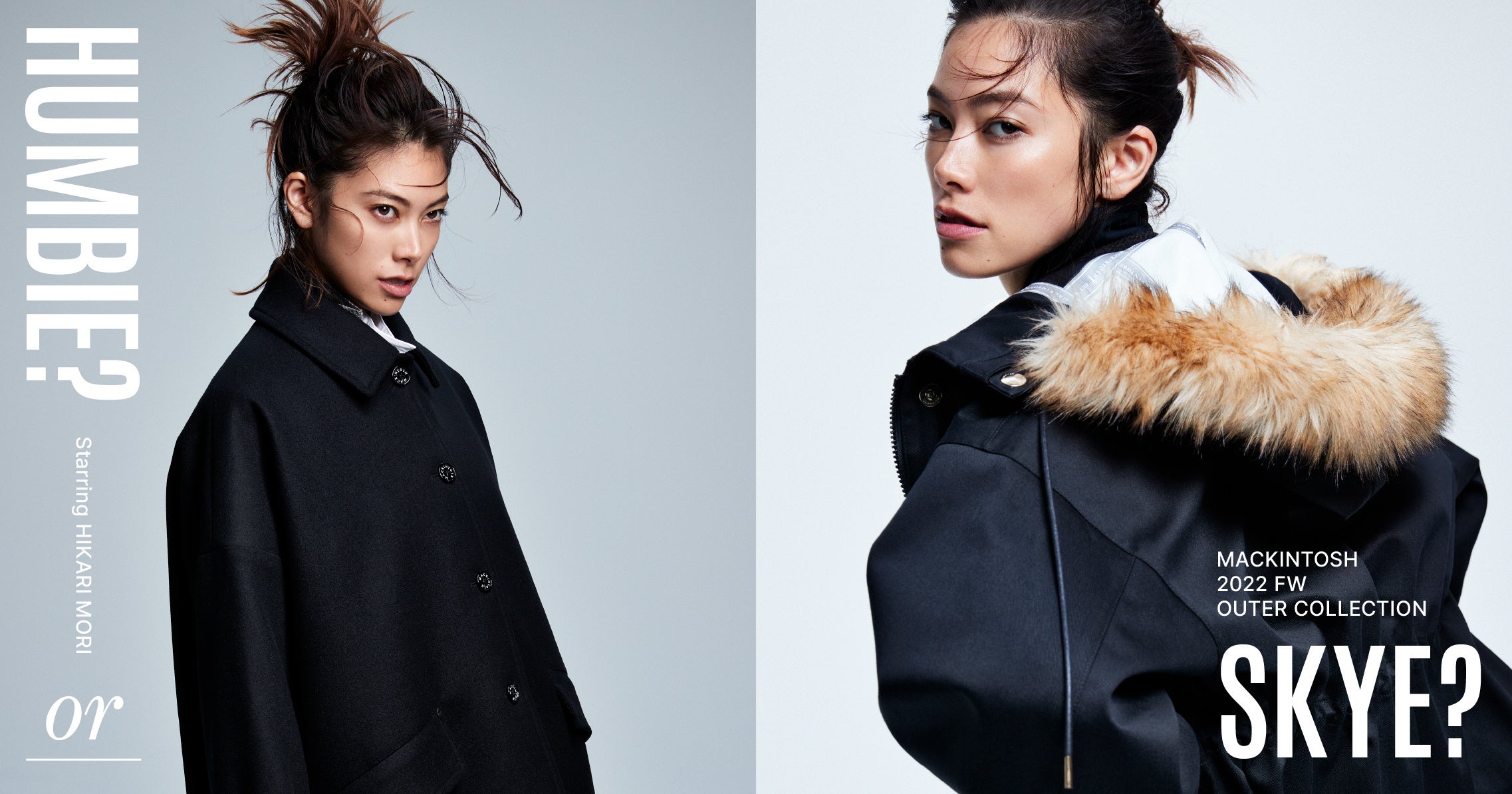 英国の老舗アウターウェアブランド「マッキントッシュ(MACKINTOSH)」は、2022-23年秋冬、ベストセラーの2大アウター「ハンビー(HUMBIE)」と 「レインテック スカイ パーカ(RAINTEC SKYE PARKA)」にフィーチャーしたキャンペーン“HUMBIE?OR SKYE?starring Hikari Mori ”のキャンペーンを10月11日(火)よりスタート。