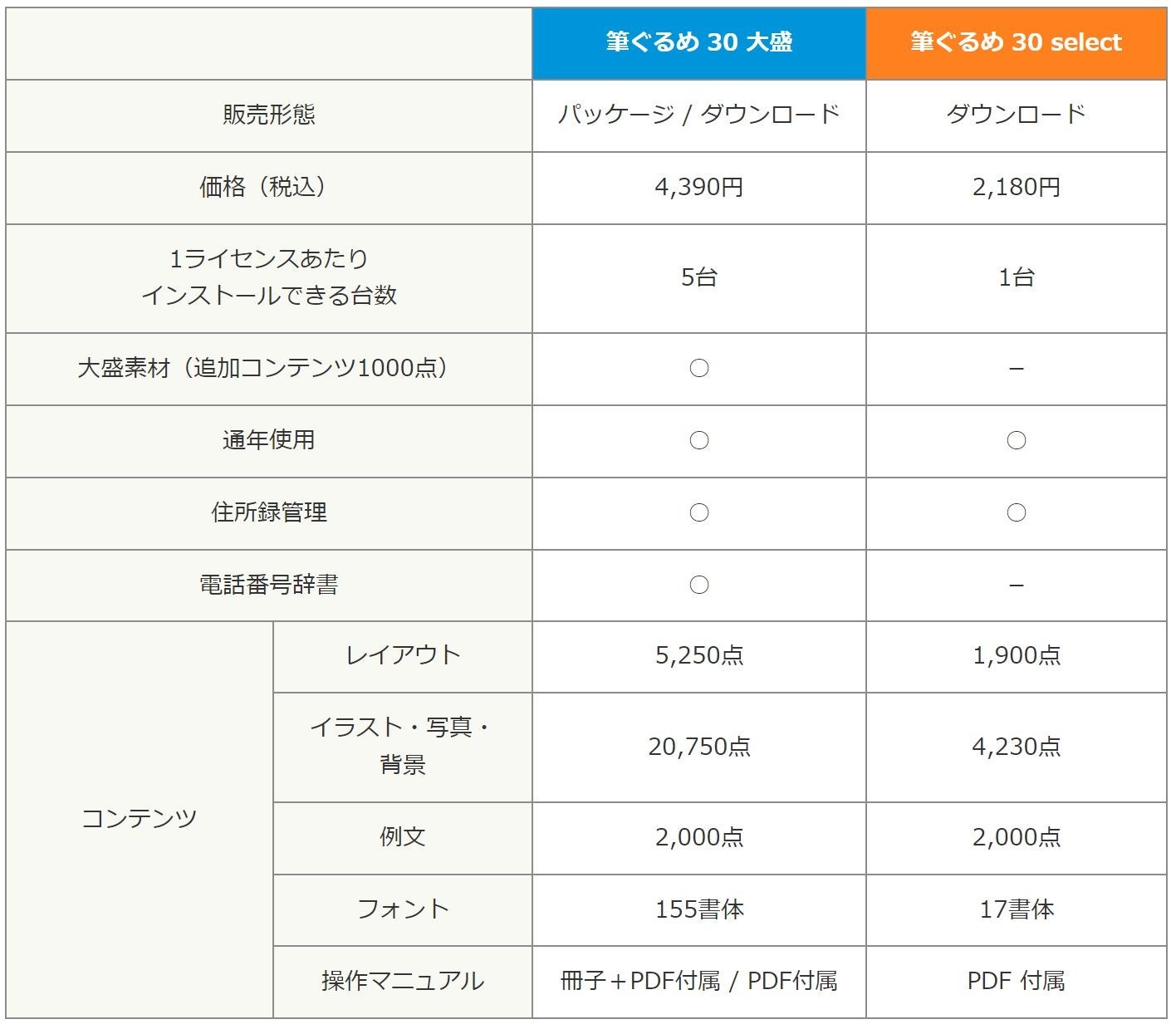 筆ぐるめ 30 大盛 シリーズ - 製品特長