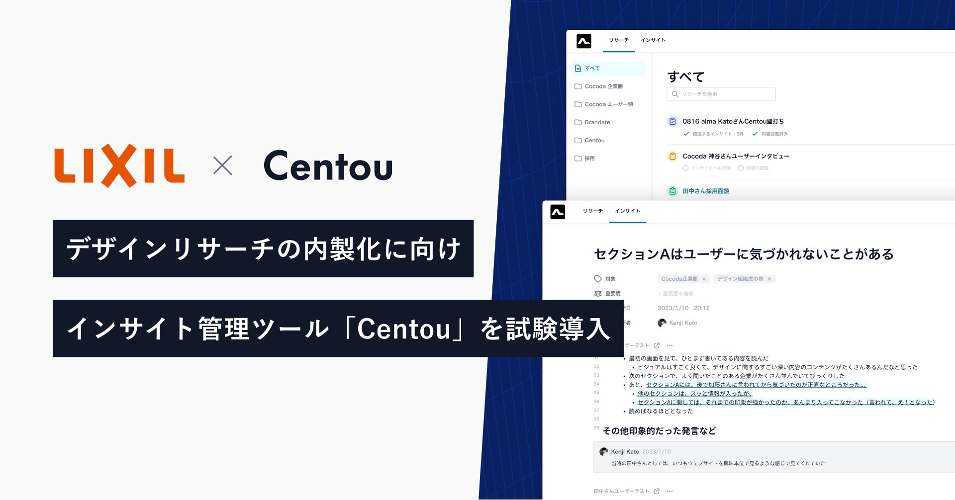 住宅設備機器・建材業界最大手のLIXIL、デザインリサーチの内製化に向け、インサイト管理ツール「Centou」を試験導入