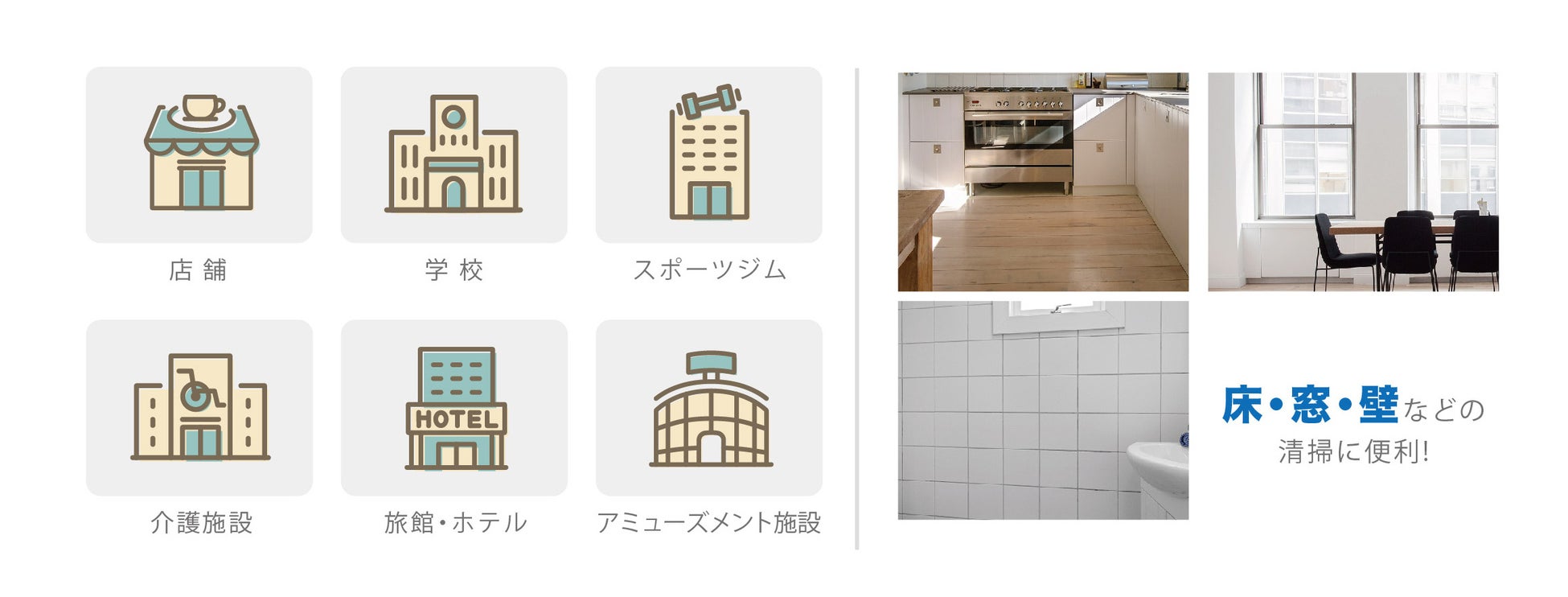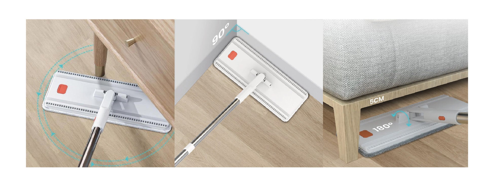 専用モップは前後・左右180度可動のフレキシブルヘッドので狭い隙間なども楽に清掃が可能のです。