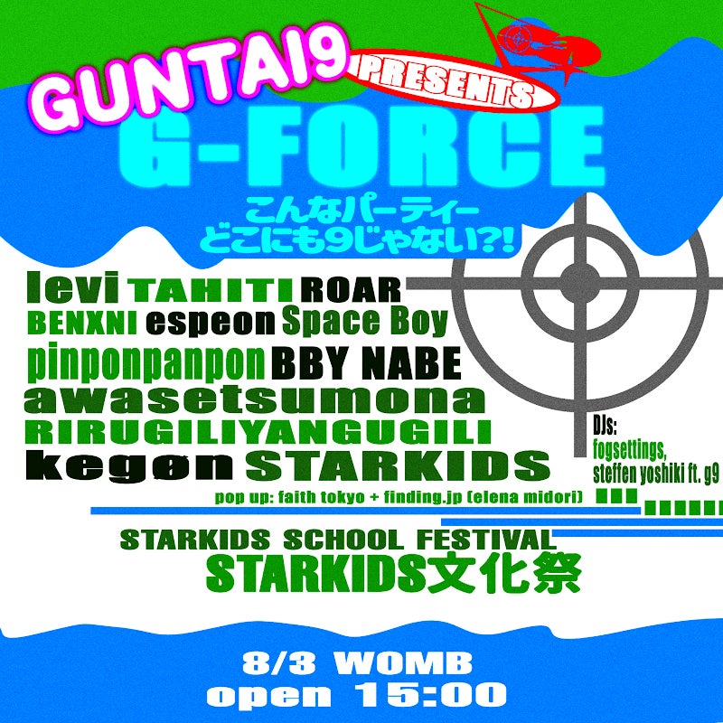 この夏8月3日(土)STARKIDSが仕掛けるイベント「G-Force」ゲストアーティストにはメンバーとの交流の深い awasetsumona, BBY NABE、PINPONPANPONに加え、rirugiliyangugili, kegønの参戦が新たに決定!イベントへの期待が更に高まる。