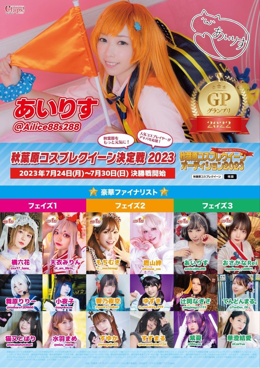 7/24(月)から秋葉原コスプレクイーン決定戦2023が開幕!総勢18名のコスプレイヤーがグランプリを目指す!昨年のグランプリの「あいりす」のインタビューも!