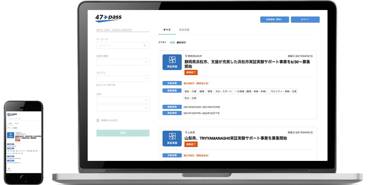 そこで弊社は、自治体施策の実証実験に着目し、企業のサービスやプロダクトを地方をはじめとする日本全国への拡大を支援する「47pass(よんななパス)」を開発いたしました。