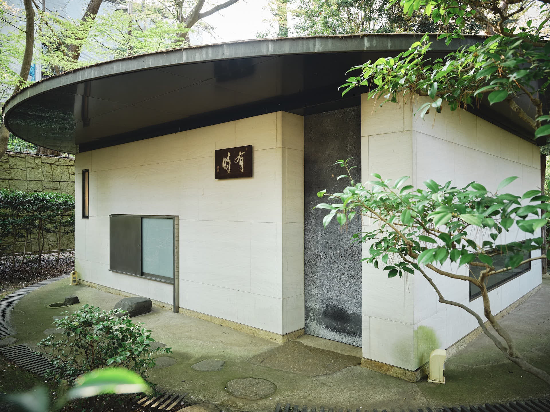 「御殿山トラストシティ」の「御殿山庭園」のなかには、風雅な建物がひっそりと佇んでいます。円形の屋根に、四角く空間を切り取る白い壁。実はこの建物、建築家・磯崎新氏設計の伝統と革新を融合した現代の茶室なのです。