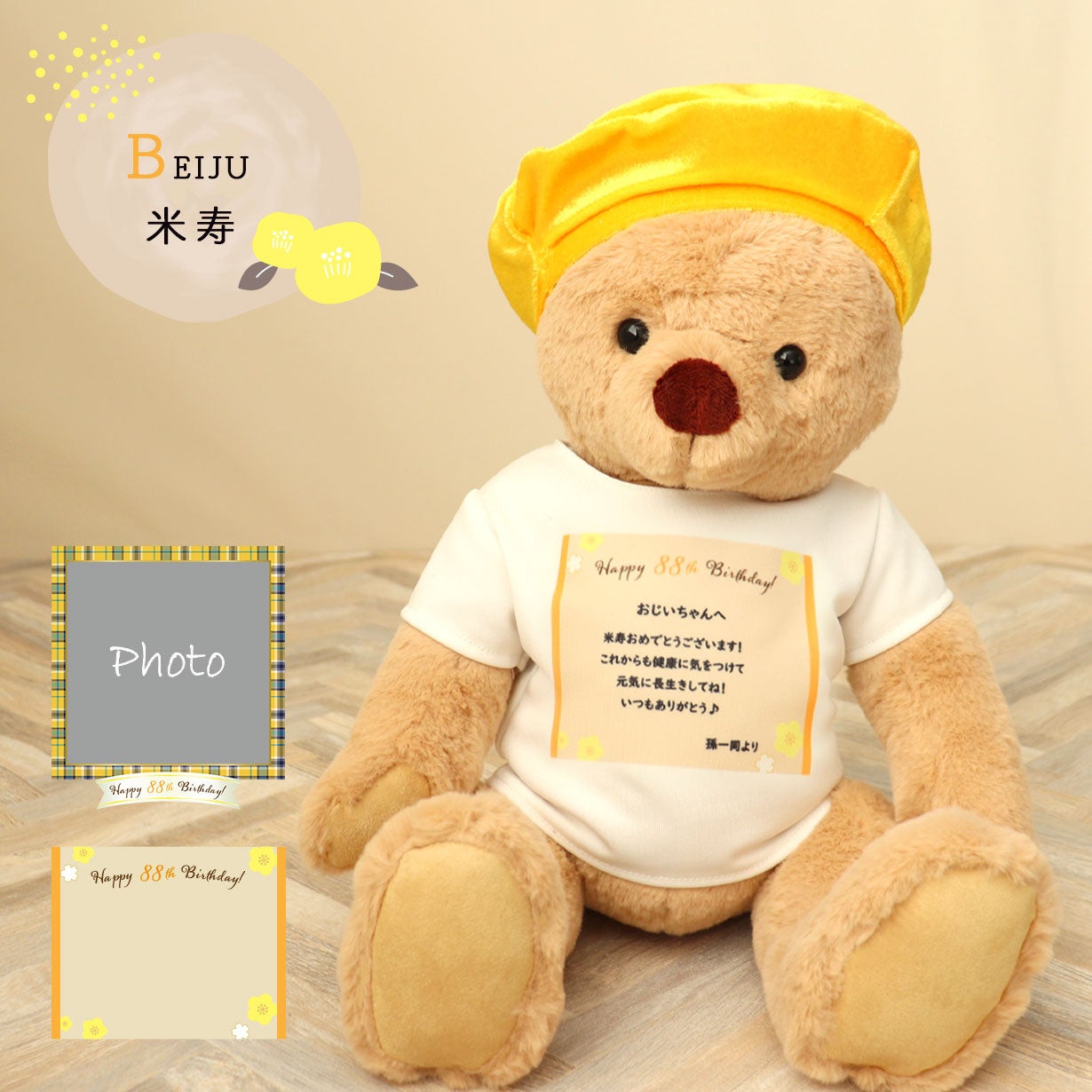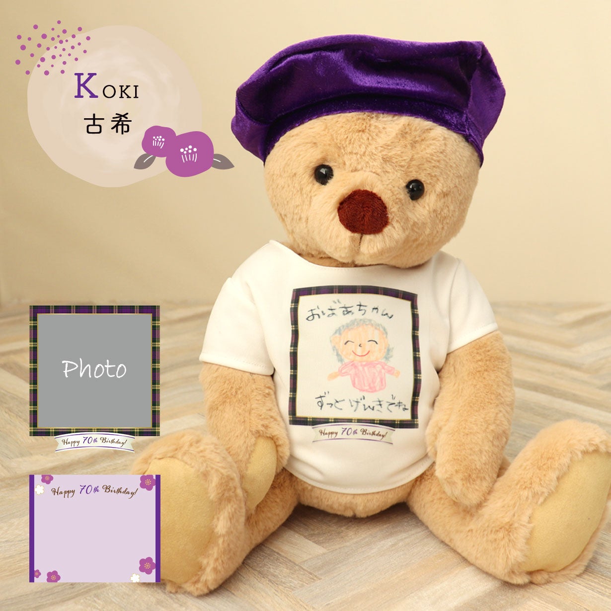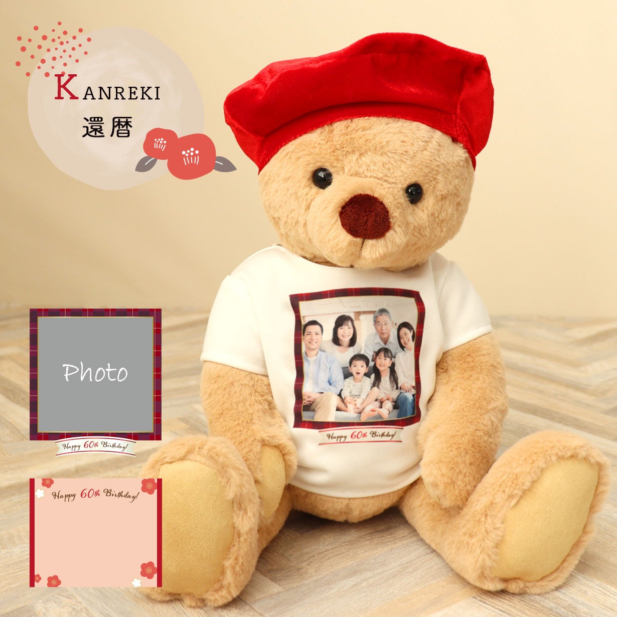「ファミリー長寿ベア」はTシャツに、オリジナルの写真またはメッセージをプリントした「家族の想い」がカタチになる、記念写真のようなテディベア