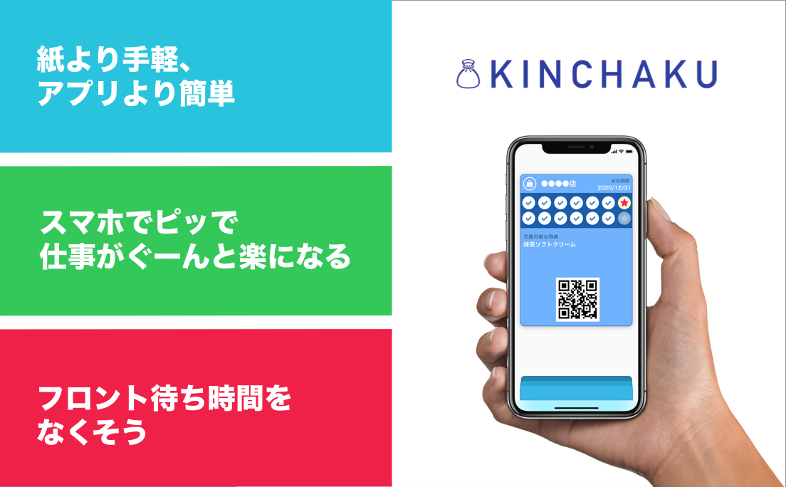 KINCHAKUは、実店舗向けのウォレットパスプラットフォームであり、iOSとAndroidの標準アプリであるApple WalletとGoogle Payで管理できるウォレットパスの発行・販売や、予約・決済、顧客・売上管理、分析、リピータ獲得等をワンストップで行えるサービスです。