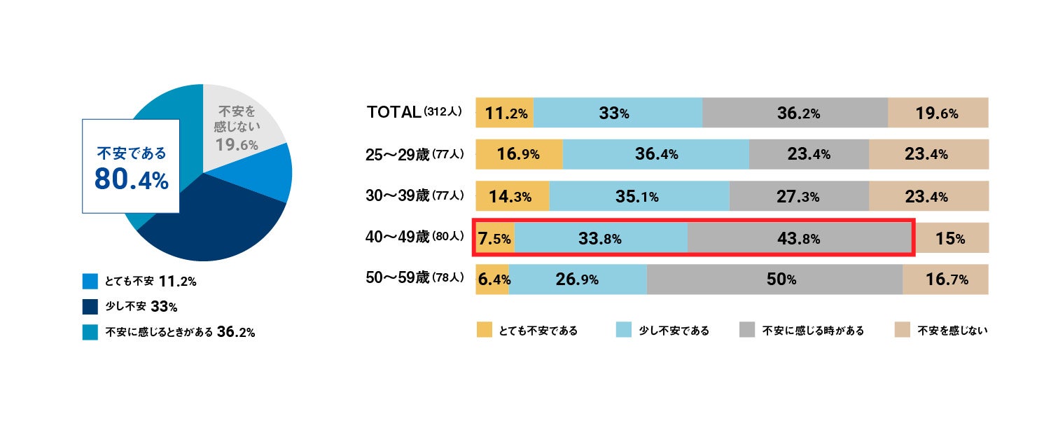 自身のニオイに対する不安は、40代が最も高く約85%が不安を感じている。