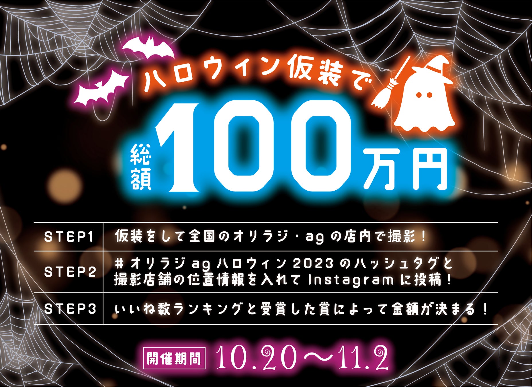 →『#オリラジagハロウィン2023』のハッシュタグと撮影した店舗の位置情報を入れてインスタグラムに投稿