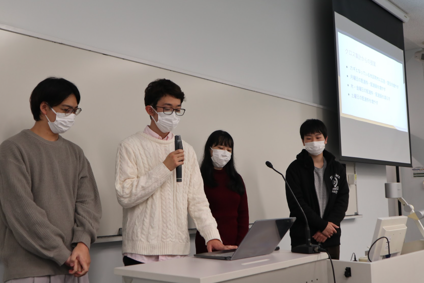 続く2022年11月8日・29日には、麗澤大学経済学部学部長 上村昌司教授ゼミの学生が、9月講義と同データを用いて、株式会社Antway向けの活用提案を実施。人事責任者小川未来とデータエンジニアの佐々木彬弘が、提案に対する講評を交えながら特別講義を行いました。今回学生が分析・提案した内容を、実際に「 つくりおき.jp 」サービス品質の向上に向けて活用してまいります。