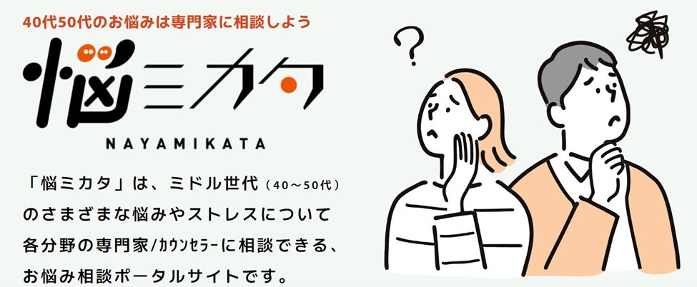 自身のキャリア・健康、親の介護、子育ての不安、今後の人生…生き方が多様化して何が正解なのかわからず、残りの人生をどうすればいいのか、複雑な悩みを抱えている方も多いと思います。誰にも相談できず、1人で抱え込んでしまうケースも珍しくありません。そこで、悩んでいるミドル世代の方々の不安を解消し、健やかな日々を送ってもらいたいと願い、各分野の専門家/カウンセラーに相談できるオンライン相談サービス「悩ミカタ(なやみかた)」をリリースいたしました。