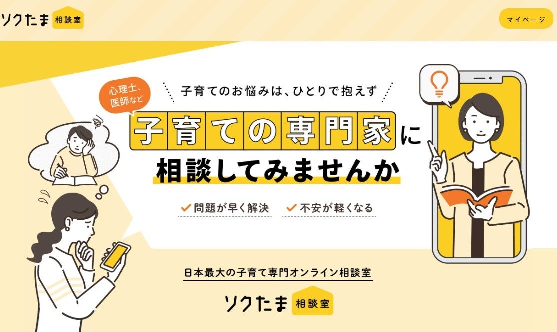 姉妹サービス「ソクたま相談室」は、子育て・教育のお悩みに特化した日本最大のオンライン相談室です。医師、心理士、スクールカウンセラーなど厳選された各分野の専門家150名以上の中から自身のお悩みに合った専門家を選び、オンラインビデオ通話やメールで直接相談することができます。いつでもどこでも気軽に相談できる利便性も人気の一つです