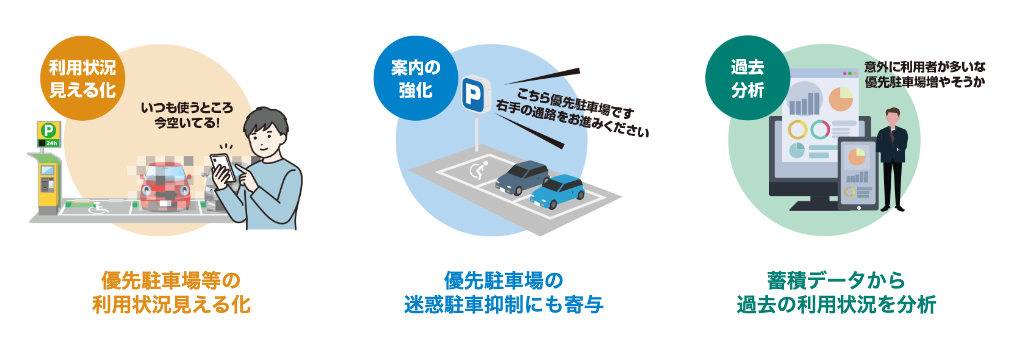 例えば、優先駐車場付近に設置したカメラで、駐車場の利用状況見える化をすることも可能です。