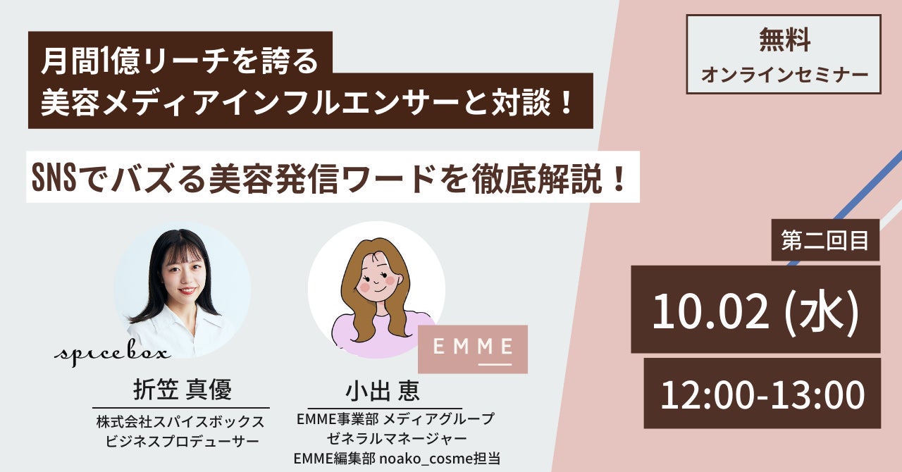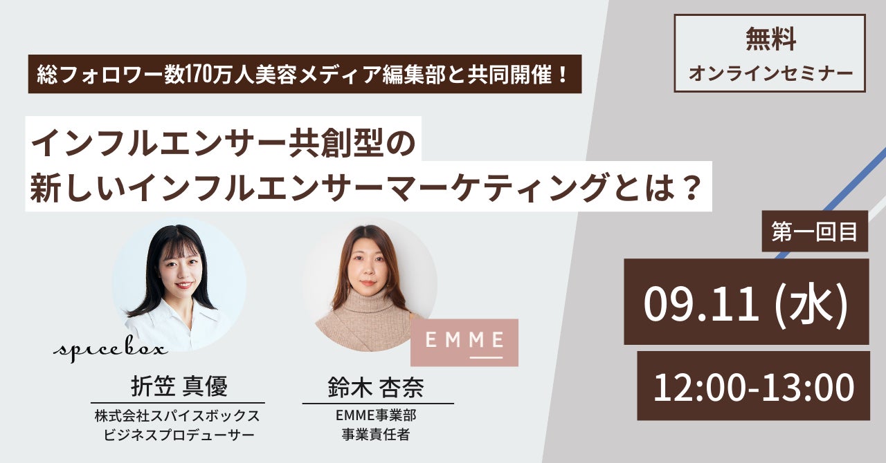 SNS傾向やインフルエンサーマーケティングの新しい考え方を解説する無料ウェビナーをEMME編集部とスパイスボックス共同で開催!