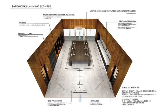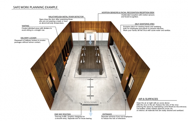 空間プロデュース専門会社のTRANSIT GENERAL OFFICEと、インテリアデザイン設計のLINE-INC.と、総合衛生コンサルタントのSPEC BIO LABORATORYの3社が組んで、この問題に対応する新しいオフィスづくりを提案させていただきます。