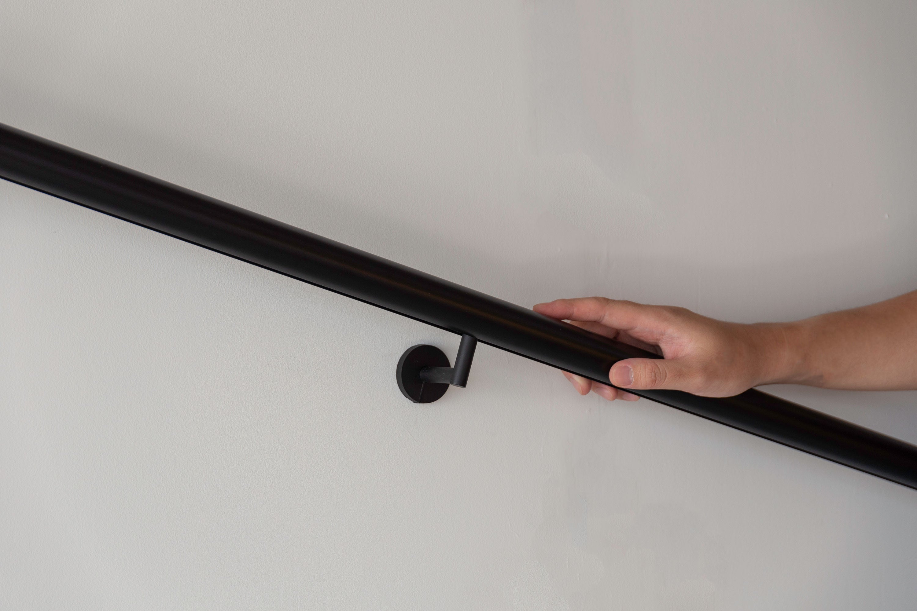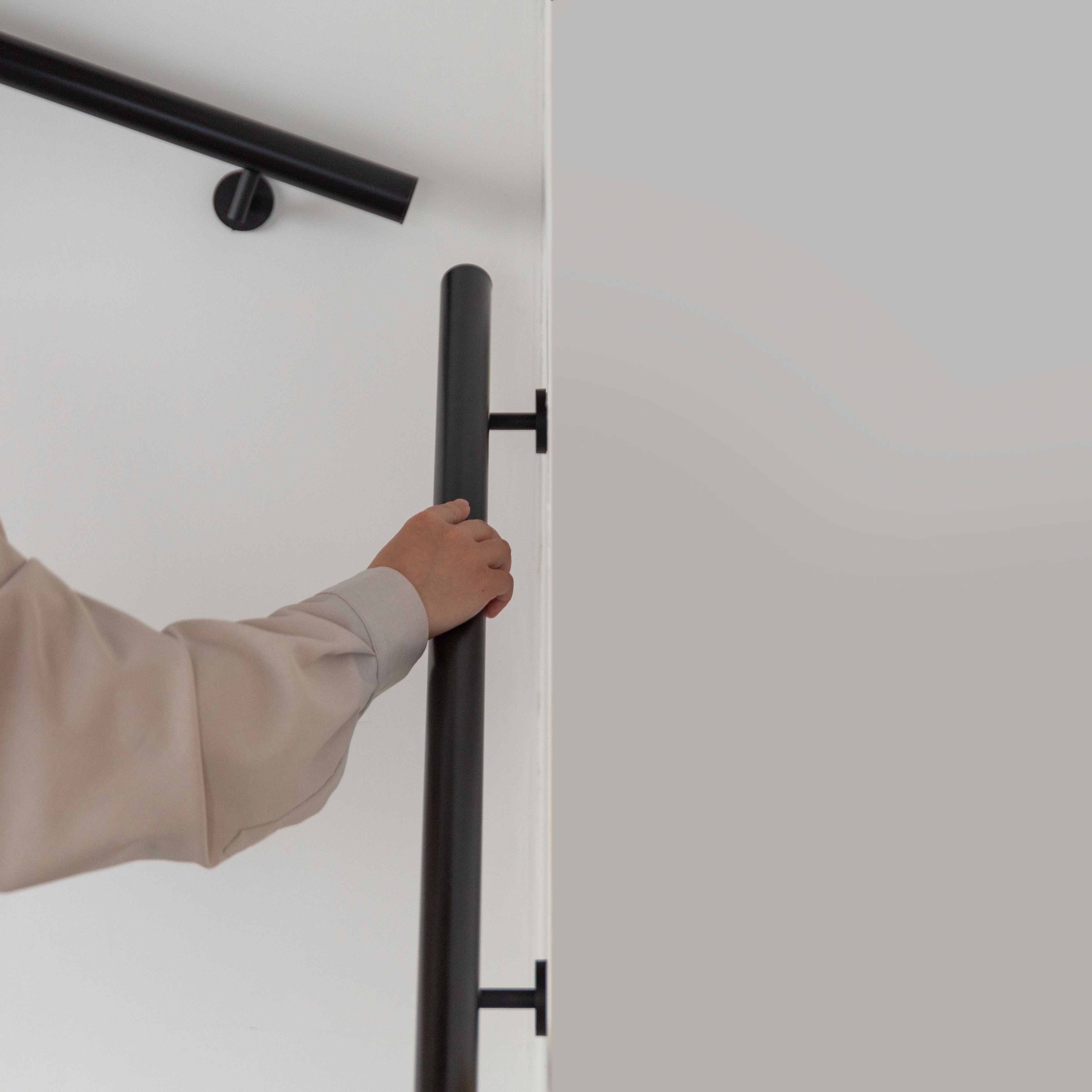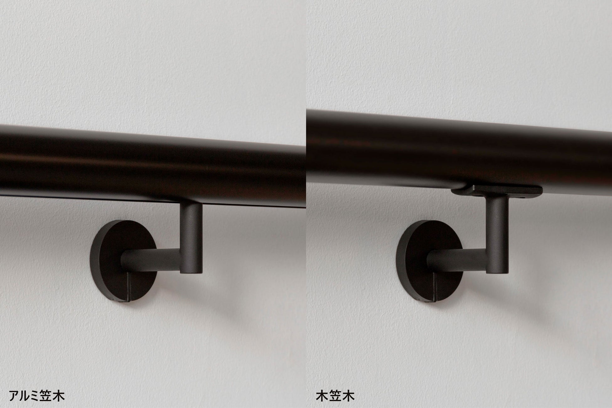 プレーンに仕上げられたパーツと意匠を揃えた形状により、シリーズでの統一感が生まれるとともに、壁付手摺単体でもほのかな存在感と空間に溶け込む主張の無さのバランスが絶妙な佇まいとなっています。