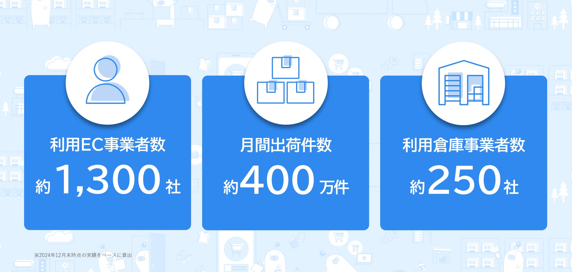 当社が提供しているEC自動出荷システム「LOGILESS」は、ECビジネスの物流業務効率化に欠かせない、OMS(受注管理システム)とWMS(倉庫管理システム)が一体となったシステムです。EC事業者と倉庫事業者が一つのシステムを利用するため、毎日発生する受注から出荷までの連携作業等が不要になり、ミスなくスピーディーな出荷を実現できます。2017年より本格的にサービス提供を開始して以来、多くのお客様にご利用いただくことができ、EC事業者のアカウント数は2024年末に1,300社、利用倉庫事業者は250社を突破しております。