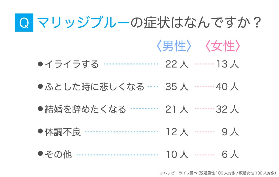 男性は『イライラする』、女性は『結婚を辞めたくなる』といった答えも多いです。