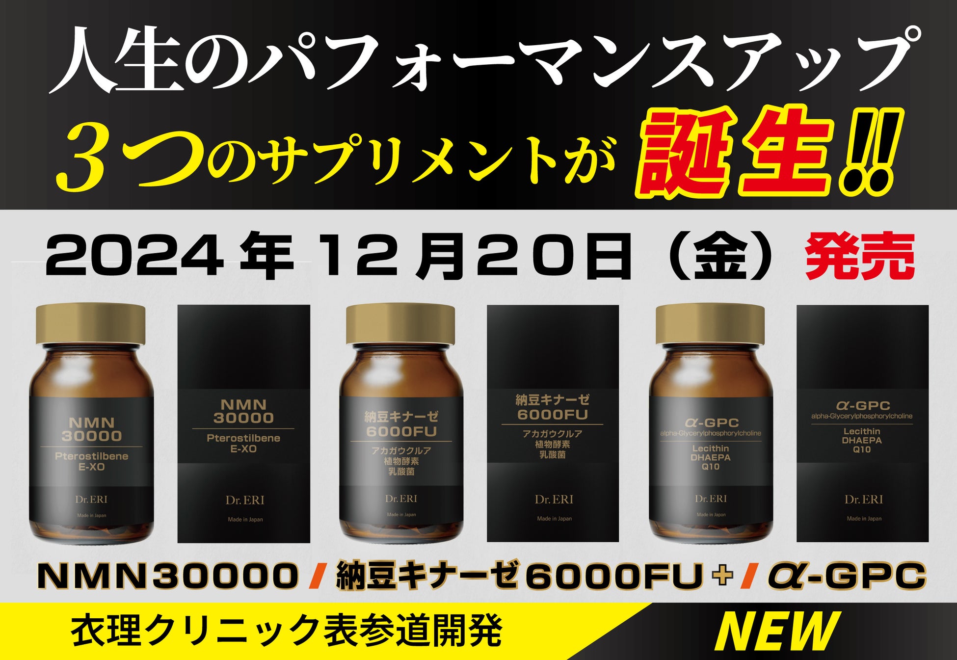 総合アンチエイジングクリニック「衣理クリニック表参道」は、統括院長の片桐衣理とエクソソームの権威落谷孝広教授の協働によるサプリメントを3種を2024年12月20日(金)より新発売いたします。