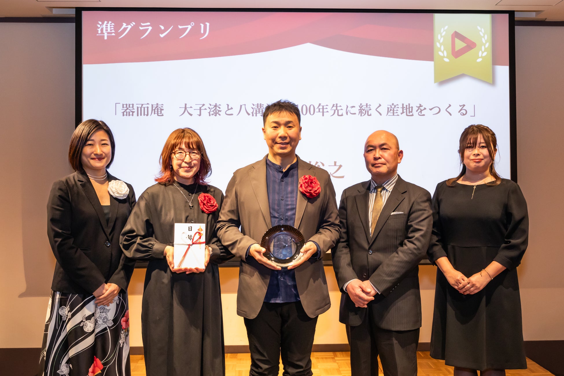 普段は妻と二人で映像制作をしています。このような伝統工芸、ものづくりの映像はずっと制作したいと思っていましたので、職人の辻徹さんとの出会いに改めて感謝しています。辻さんは「100年先に大子漆を残す」思いで、漆の苗木を植えることから約10年以上かけて育てて樹液を採取して、漆器を作る。そうした一貫した生産販売まで行っています。このアワードにご参加いただいた皆様に、職人さんの仕事や商品を知っていただけて、大変嬉しく思っています。