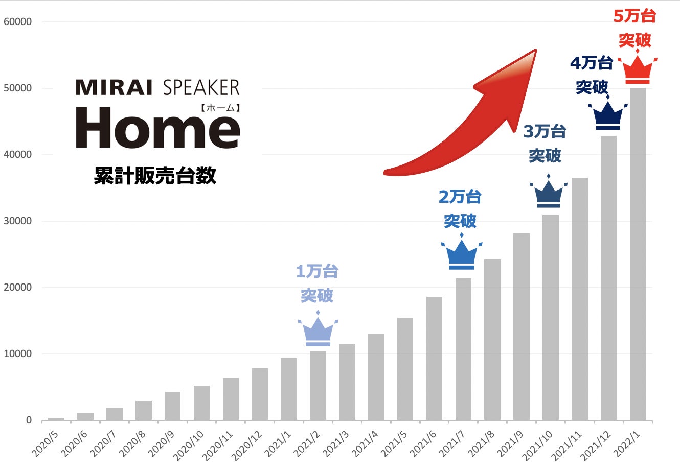 - 月間販売台数1万台を記録し、累計販売台数5万台を突破