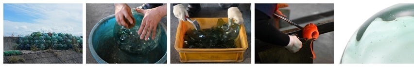 漁業用のガラス製浮玉をアップサイクルしたグラスウェア「DOUBLE F -UKIDAMA EDITION」