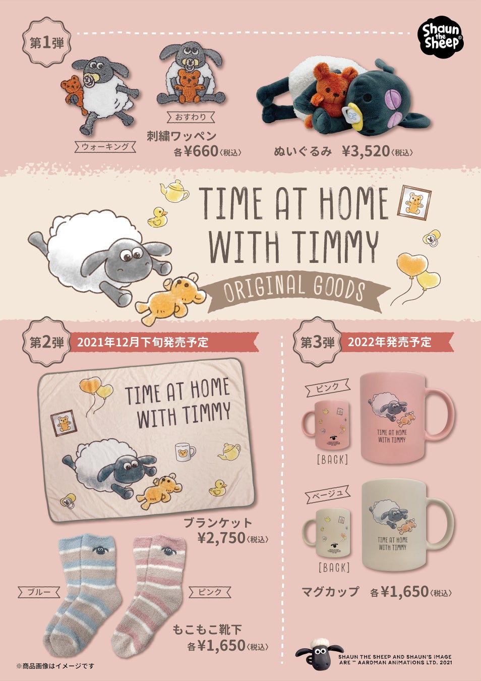 ひつじのショーンの群れのなかで最年少ティミーの「TIME AT HOME WITH TIMMY」シリーズのグッズが新登場いたしました。ひつじのショーン施設各所にて、第一弾のキュートな刺繍ワッペンやぬいぐるみ、第二弾のブランケットともこもこ靴下(2種)は好評発売中です。第三弾のマグカップは2月中旬より発売いたします。