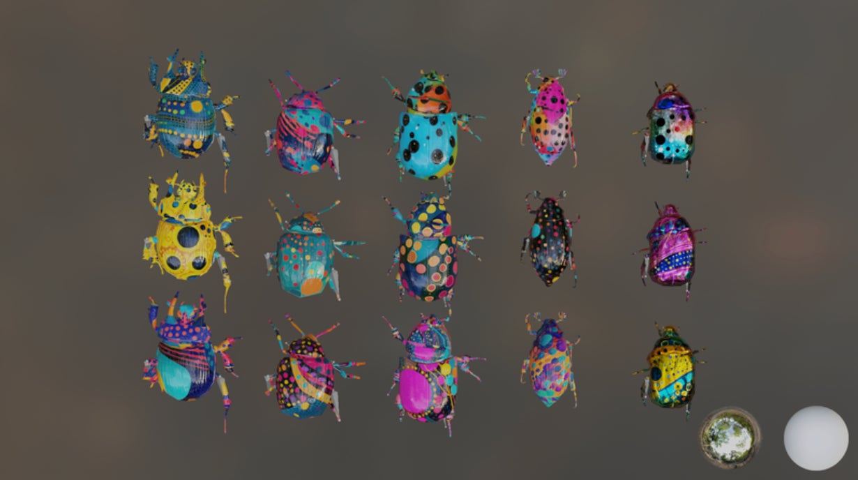 (画像:Midjourneydで生成したテクスチャを反映した虫のモデル)