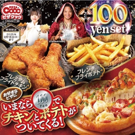 ピザクック(運営元:イワタダイナース 福岡市博多区諸岡3-25-20)から毎年大人気、冬のプラス100円セット登場!お好きなピザに+100円するだけで、チキンとポテトがついてくる、冬の定番・超お得なセットです!(キャンペーン期限:2025年2月16日まで)