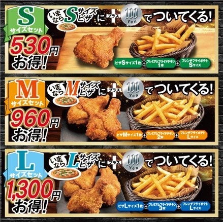 ピザにプラス100円するだけで、チキンとポテトがついてくる!