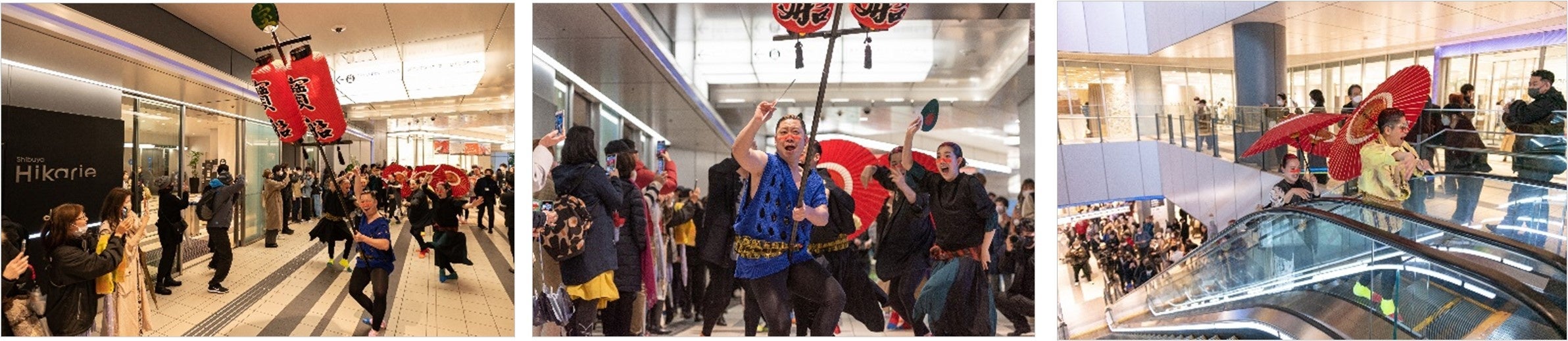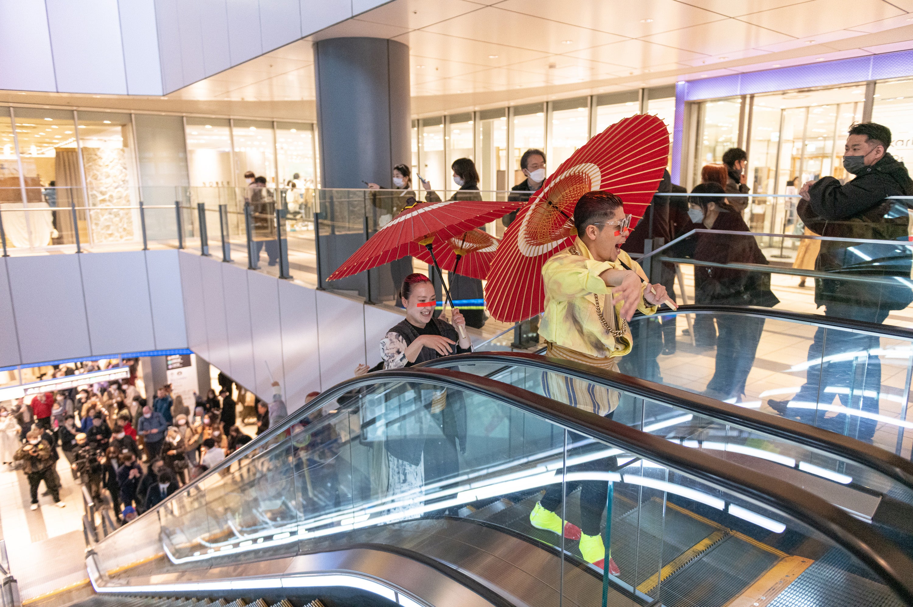 なお、当日は、悪天候のため当初に予定していたヒカリエデッキから、急遽渋谷ヒカリエ館内の2階貫通通路、3階アーバン・コアへ会場を変更しパフォーマンスを実施しました。