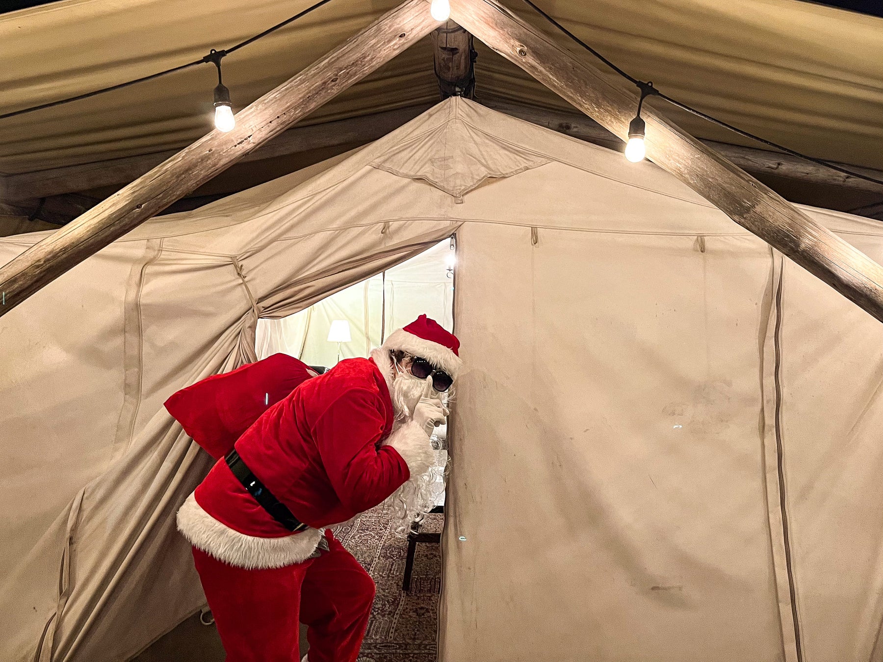 【お菓子プレゼント】テントにワイルドサンタがやってくる♪