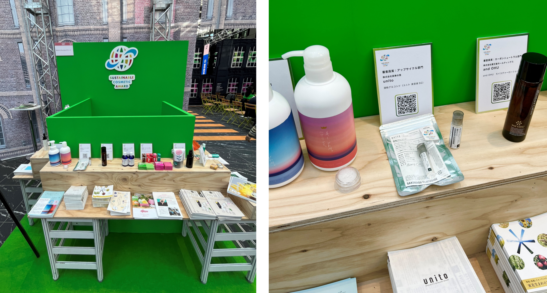 ブランドローンチから1年9か月。この度エントリーさせていただいた商品で「審査員賞:アップサイクル部門」を受賞、また、「NEW ENERGY」イベント内ではサステナブルコスメアワードブースで展示をさせていただき沢山の方に「unito」を知っていただく機会を頂戴し格別な想いでおります。