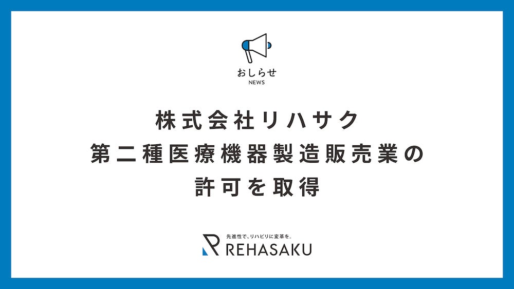 株式会社リハサクが第二種医療機器製造販売業の許可を取得