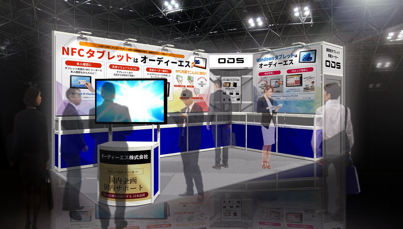 業務用タブレットのオーディーエス、「リテールテックJAPAN」にて人手不足や従業員の業務効率化をテーマにNFCタブレットを展示