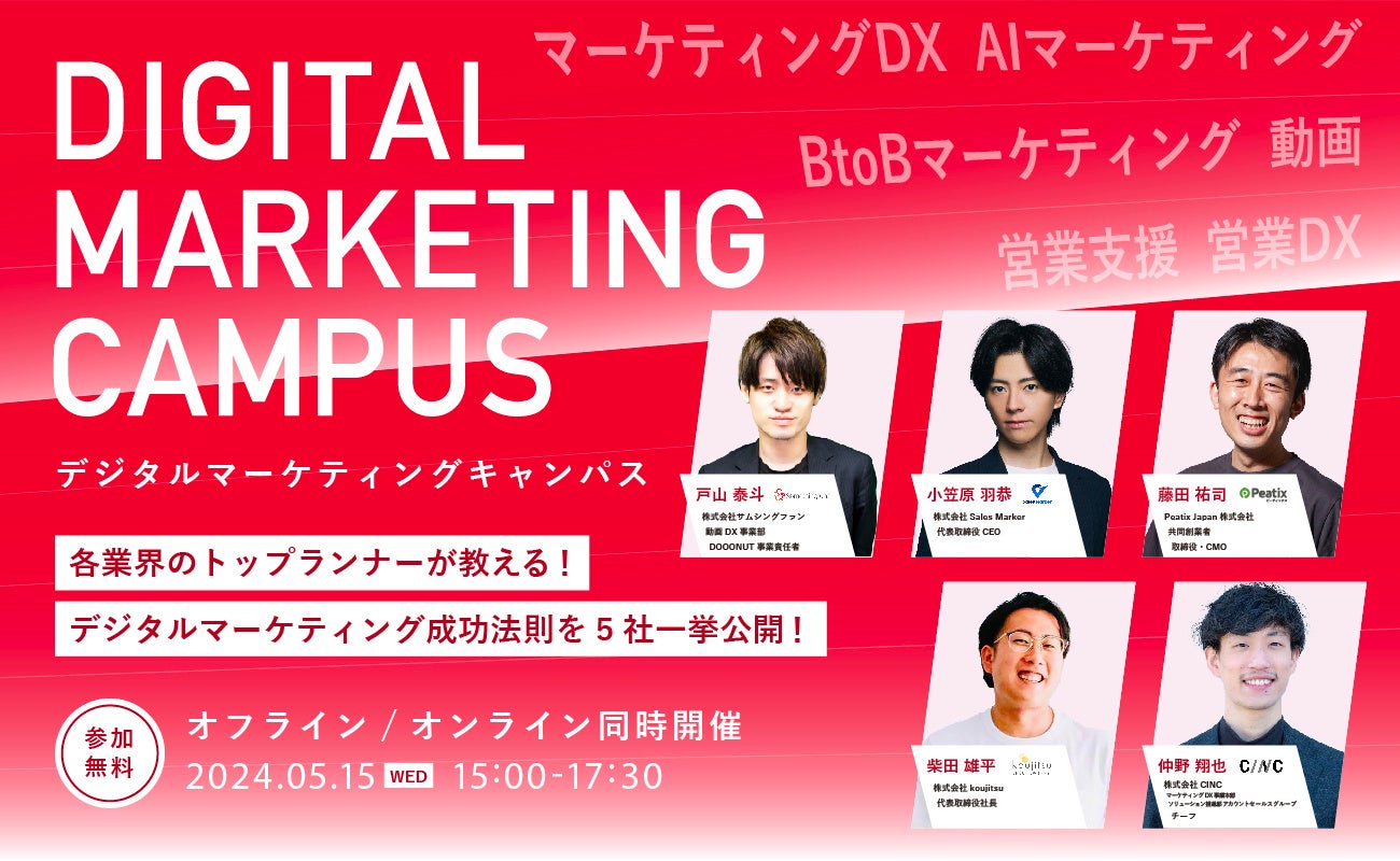デジタルマーケティング成功法則を5社一挙公開!デジタルマーケティングキャンパス(DMC)2024に登壇することをご報告します。開催日時は2024年5月15日(水) 15:00〜17:30です。