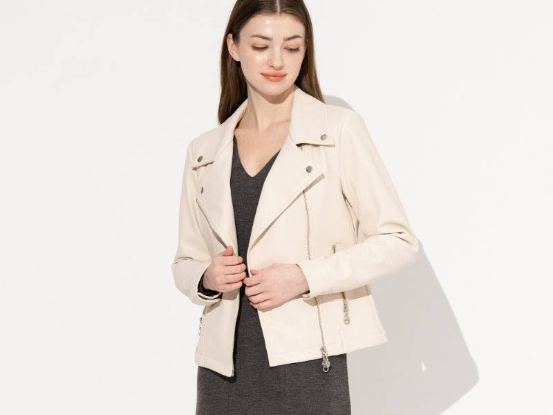 ジャケットと同素材のスカートをドッキングしたワンピースなど