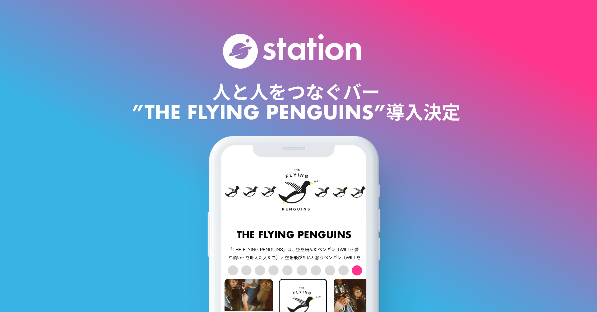 コミュニティインフラツール「station」(サービス提供会社:station株式会社 本社:東京都千代田区、共同代表:渡邊雄介、三宅高弘、以下station)が、この度、株式会社ファイアープレイスが運営する人と人をつなぐバー「THE FLYING PENGUINS」へ導入されました。