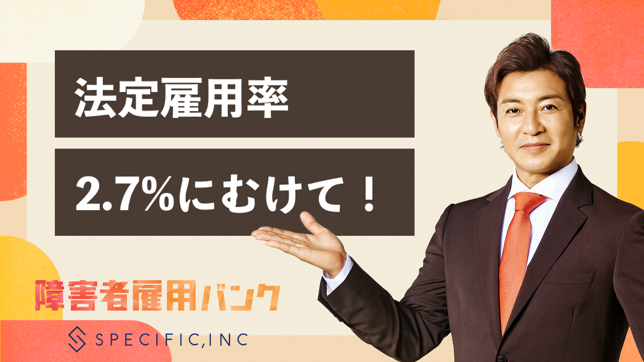 株式会社スペシフィック(本社:東京都新宿区、代表取締役社長 兼 CEO:森木 恭平、以下スペシフィック)が運営する障害者雇用バンクでは、法定雇用率2.7%上昇への報道を受けて「2.7%対策!導入キャンペーン」を開催することをお知らせします。
