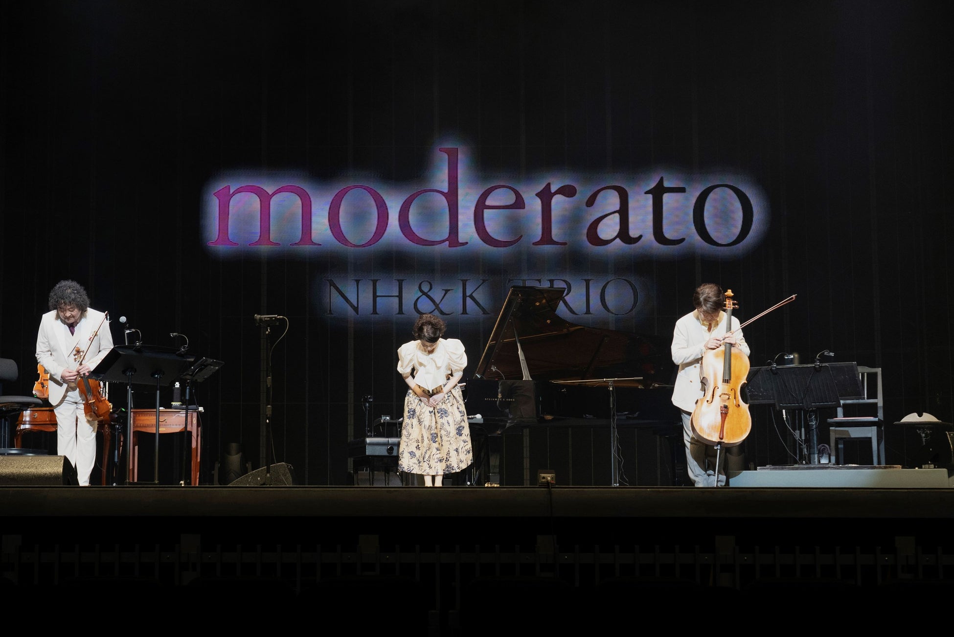 アンコールの拍手の中、再びメンバー全員がステージに登場し、3月27日に配信リリースされたNH&Kの新曲「moderato」を披露してコンサートが終了。いつまでも鳴りやまない大きな拍手に葉加瀬、西村、柏木の3人が笑顔で応えてステージを去った。