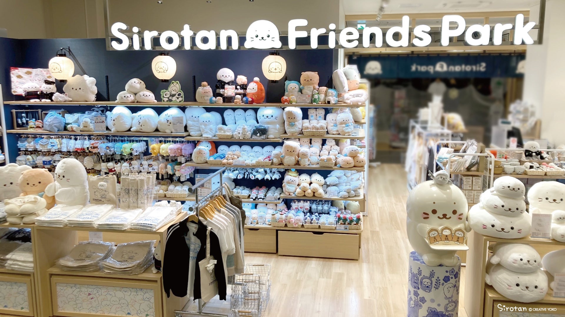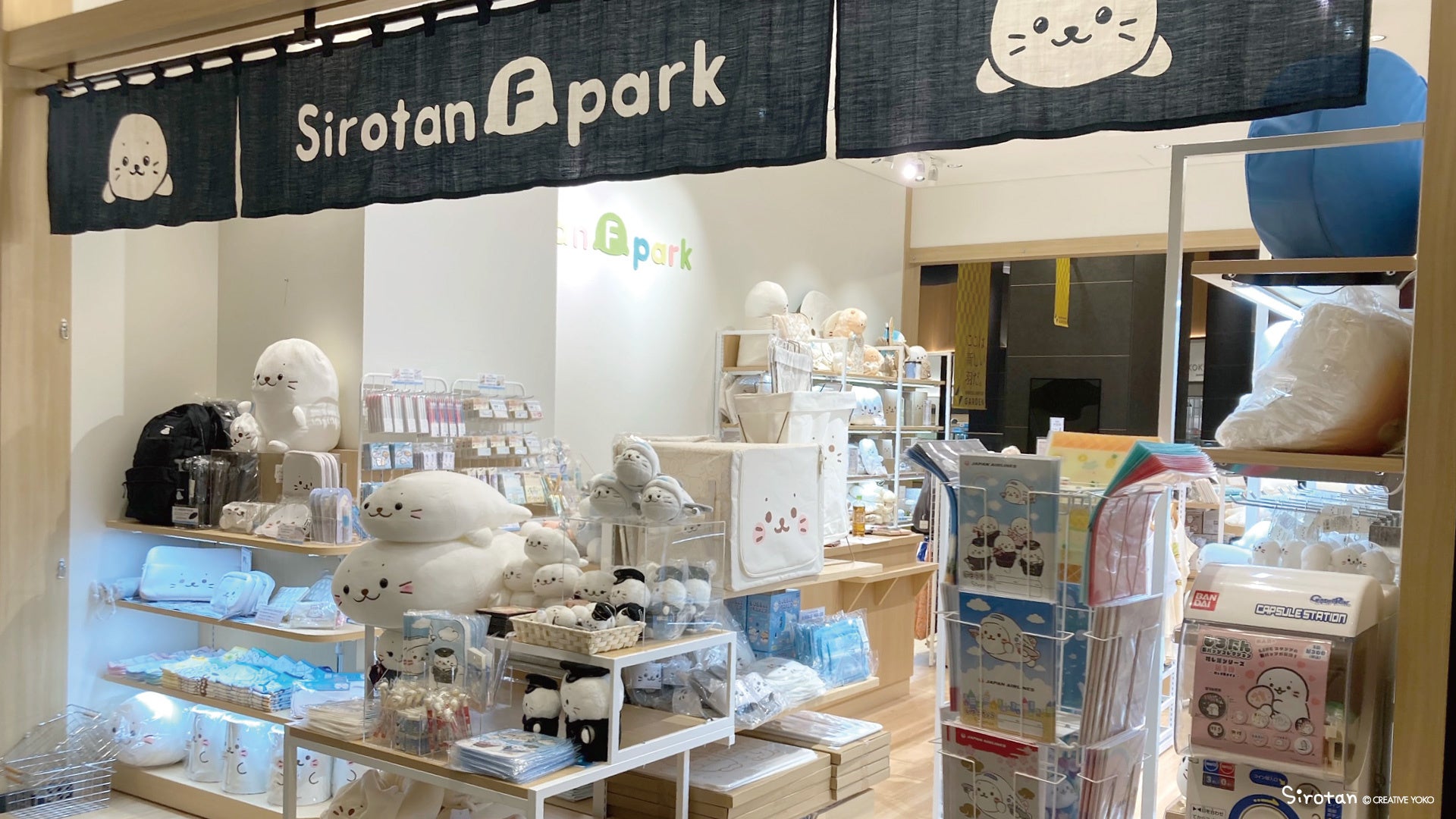 「しろたんフレンズパーク 羽田エアポートガーデン店」は、お土産や雑貨などバラエティ豊かなショップが軒を連ねるショッピングゾーン2F「羽田参道(ハネダサンドウ)」に位置しています。広い間口は開放的で入店しやすく、日本の伝統色である紺色の暖簾が旅気分を高めてくれます。商品構成は、抱きぐるみやぬいぐるみなどの定番商品に加え、パイロット制服姿の『しろたん』がデザインされたTシャツや、『しろたん』が飛行機で空を飛ぶ様子をデザインしたトートバッグなどの店舗限定商品まで幅広いアイテムをラインアップ。また、お買物だけではなく、お客さまの旅の思い出の1ページになる店舗を目指し、『しろたん』の顔つきフロントサインや、ぬいぐるみと一緒に写真が撮れる“ぬい撮りスポット”を設置しています。