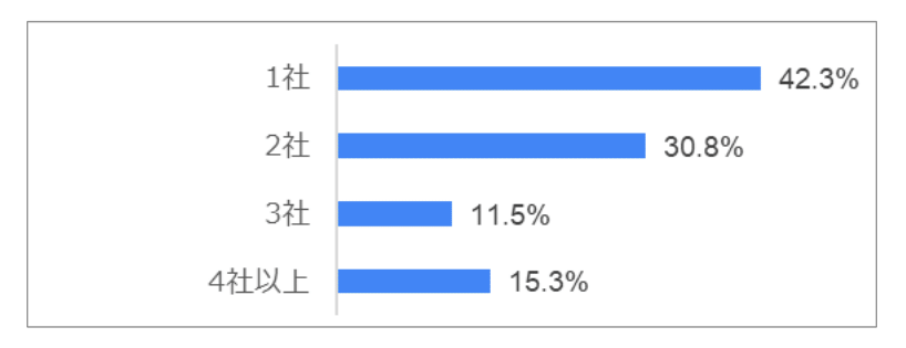 内定を受け取った会社の数を聞いたところ、複数の内定を獲得した外国人留学生が57.6%(2社30.8%+3社11.5%+4社以上15.3%)だったことがわかりました。