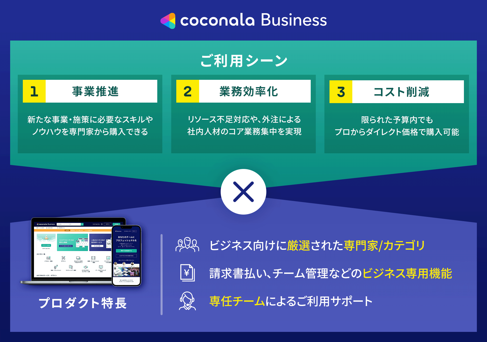 【ココナラビジネス活用シーンとプロダクトの特徴】