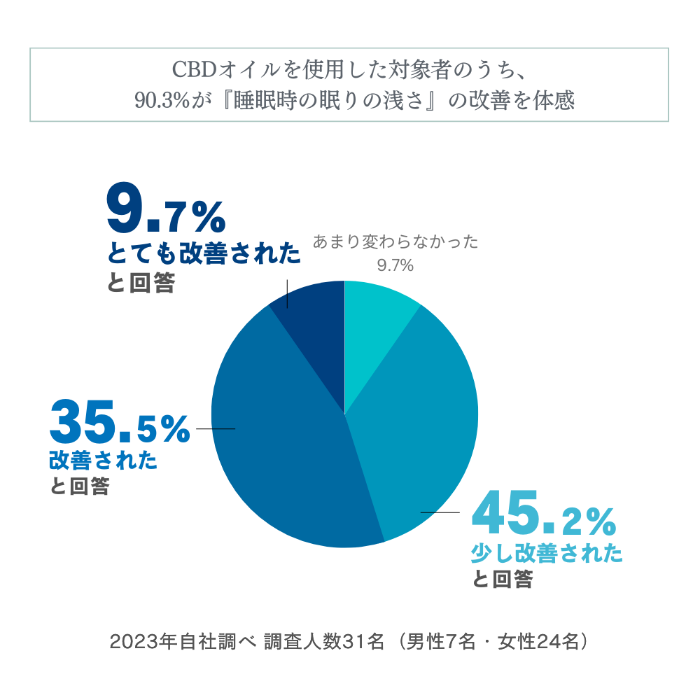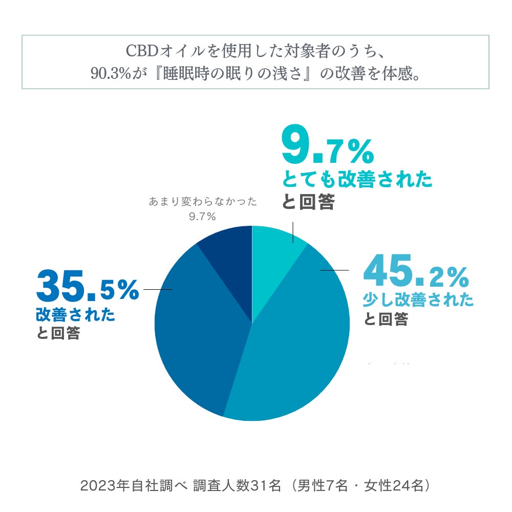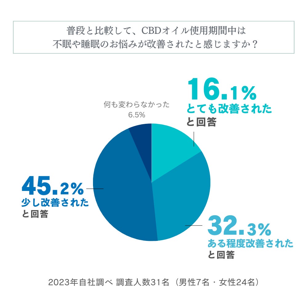 調査シリーズ第4弾!CBD10%含有オイルを使用した対象者の93.5%が、CBDオイル使用期間中は不眠や睡眠の悩みが『改善された』と回答しました。
