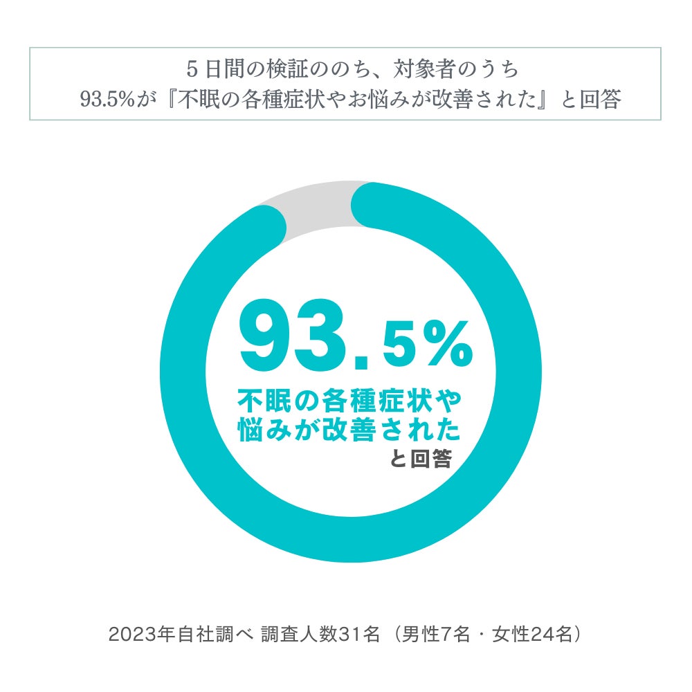5日間の検証ののち、対象者のうち93.5%が『不眠の各種症状やお悩みが改善された』と回答