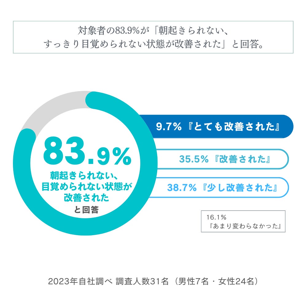対象者のうち83.9%が『朝すっきり目覚められない状態が改善された』と回答