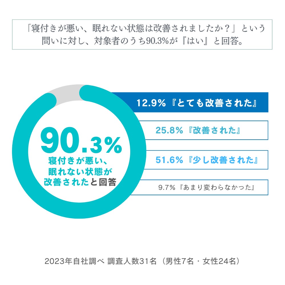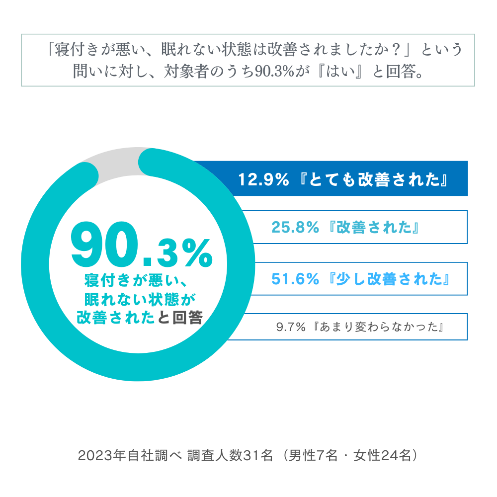 対象者のうち90.3%が『寝つきが悪い、眠れない状態が改善された』と回答