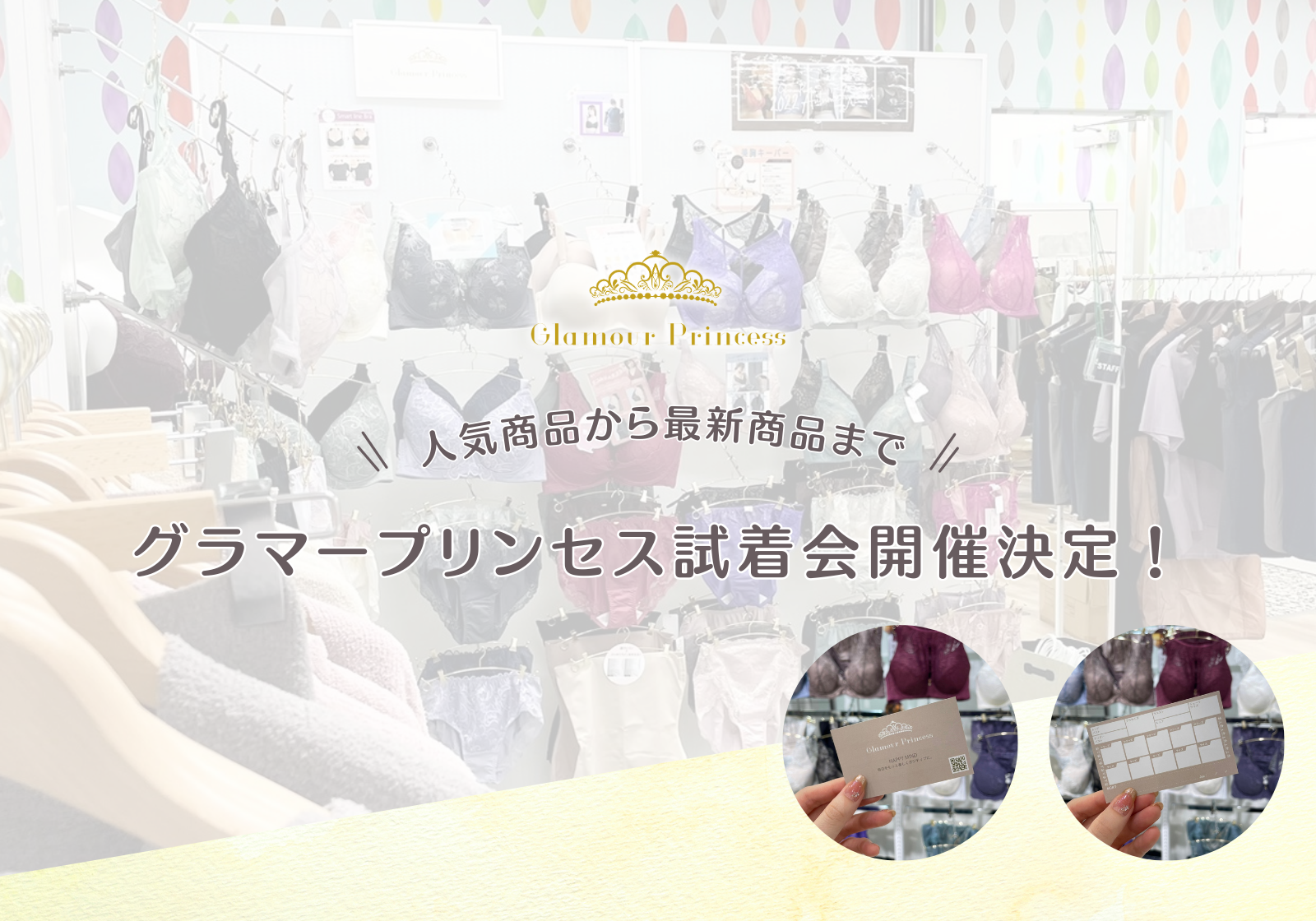 株式会社いずみ(大阪府大阪市 代表取締役社長:佐藤 大助)による、プラスサイズ向けの下着ブランドGlamour Princess(グラマープリンセス)は、この度、販売商品の試着会を開催することといたしました。期間は2023年4月21日(金)から毎週金曜日。ブラジャーやショーツのサイズ測定と、気になる商品のご試着をしていただけます。