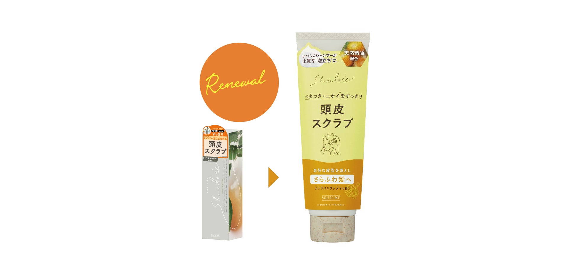 株式会社スキューズミー(本社:東京都台東区、代表取締役:小林義典)は、「キレイも、しあわせも、シェアしよう」をコンセプトに展開するトータルケアブランド「Shareloù(シェアロユー)」から、頭皮スクラブ「ヘッドスクラブ クール ミント&グリーンの香り」を限定発売、「ヘッドスクラブ シトラス&ウッディの香り」と、手軽にお試しいただけるトライアルサイズ製品を2025年5月14日(水)よりリニューアル発売いたします。