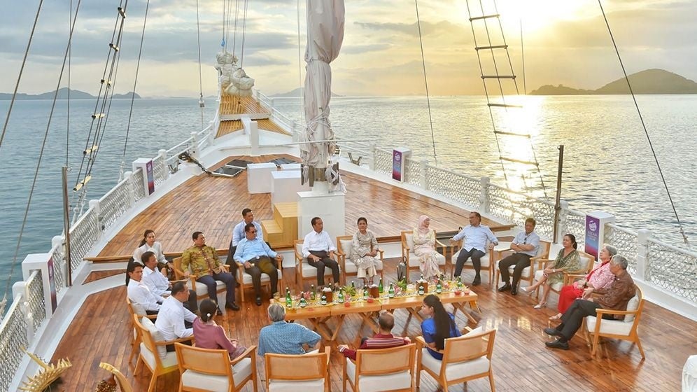 ウェルカムディナーの前に、インドネシア共和国のジョコ・ウィドド大統領は、各国の指導者をアヤナの豪華客船アヤナ ラコ ディア号に招待し、船上でサンセット観賞をしながら、皆の心に残るひと時を過ごしました。イ・マデ・グスダナ船長の指揮の下、船はラブアンバジョーの美しい海を航海、各国の指導者たちは、終日続く会議のあとの憩いの場としてラブアンバジョーの美しい自然に触れ、加盟国の絆と友情を更に深めました。