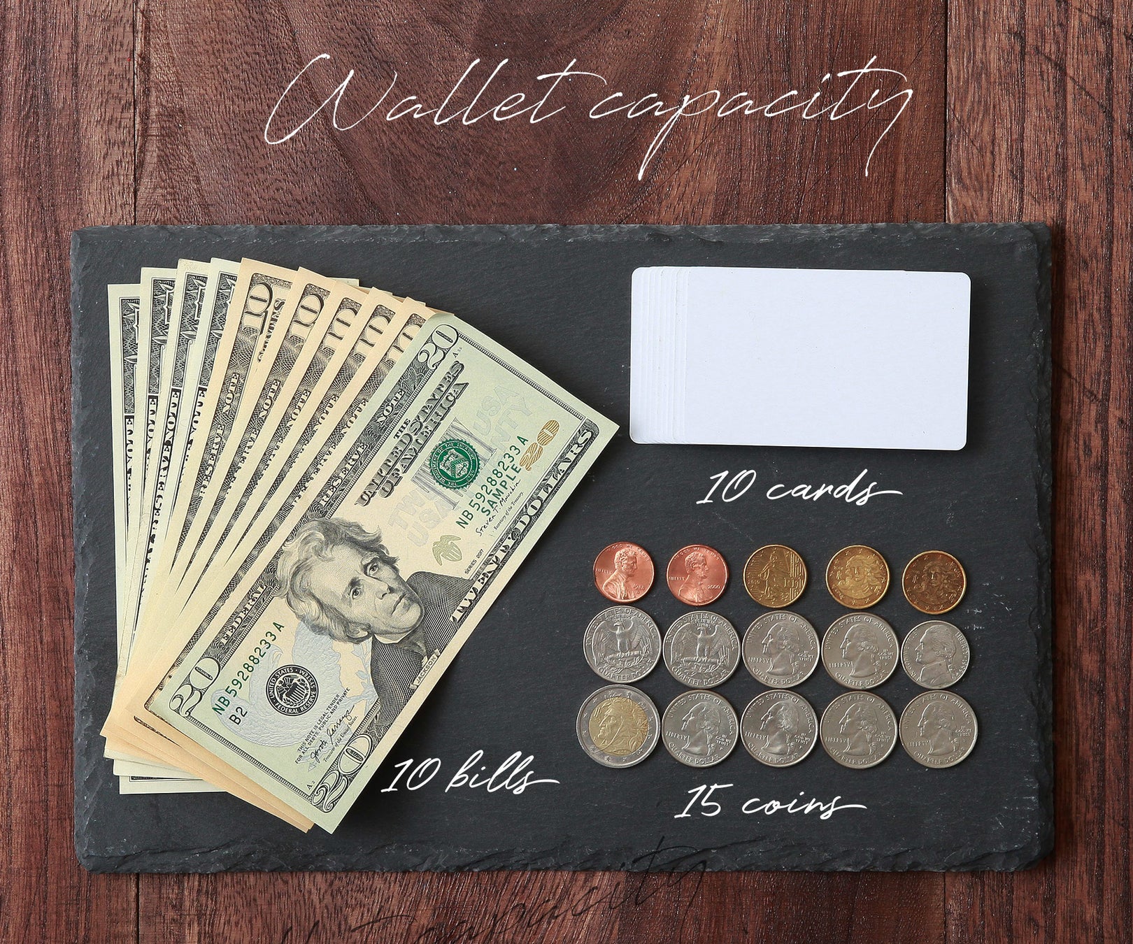 - 【薄さ1.4cm】スリム設計×大容量!カード10枚・硬貨15枚・紙幣15枚収納可能